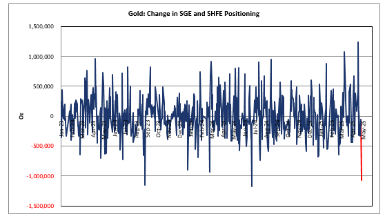 据高盛商品交易员Adam Gillard,五一假期前夕,中国交易员通过上海期货交易所和上海黄金交易所抛售了近100万盎司黄金,几乎完全逆清空了上周买入的仓位,导致在岸总持仓较历史高点已回落5%皇冠信用網怎么开户 。